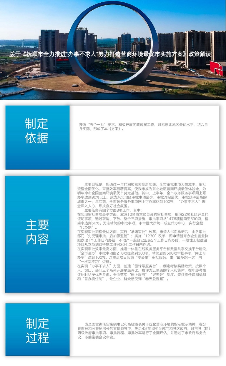 文件鏈接:撫順市人民政府辦公室關(guān)于印發(fā)《撫順市全力推進(jìn)“辦事不求人”努力打造營商環(huán)境最優(yōu)市實(shí)施方案》的通知