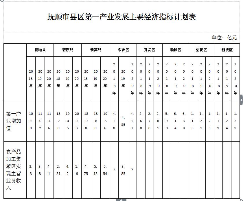附件:撫順市縣區(qū)第一產業(yè)發(fā)展主要經濟指標計劃表