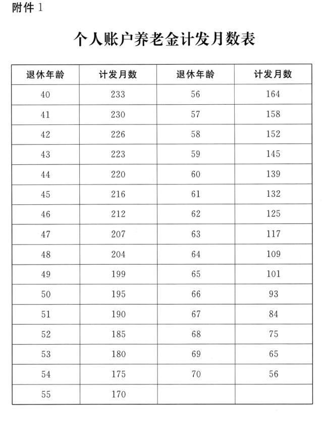 附件:1.個(gè)人賬戶養(yǎng)老金計(jì)發(fā)月數(shù)表